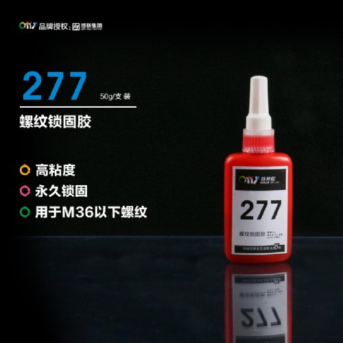 277是一种单组份、大粘度、高强度耐化学性优良的厌氧型螺纹锁固密封剂。本品在两个紧密配合的金属表面间,并与空气隔绝时固化。避免螺纹