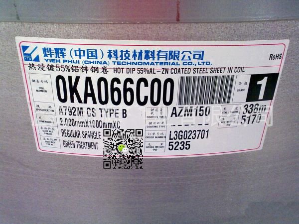 2、镀铝锌基板:含铝量55%、5%含铝锌量 AZ150、AZ100、AZ50