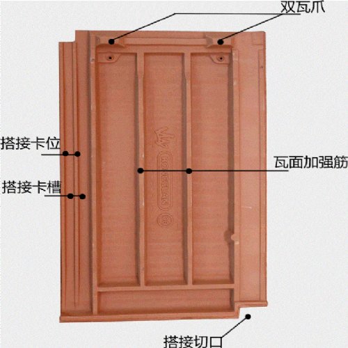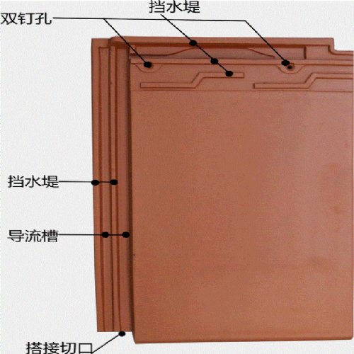 其外形除去铺贴搭接位,有效面呈平面效果,铺贴后线条明朗、表面平整(亦简称平瓦、板瓦)