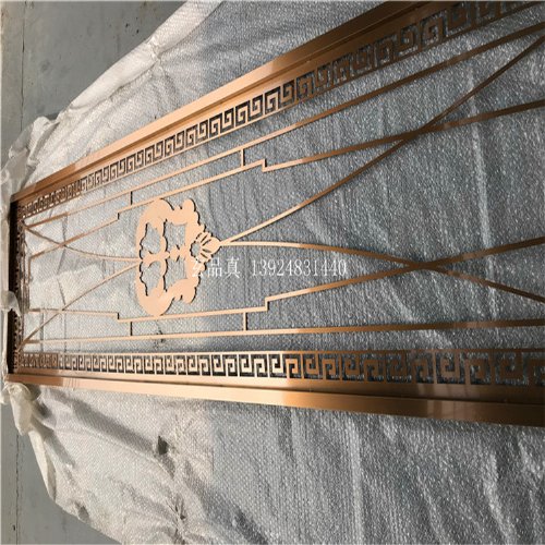 钢管焊接成形,形成中式中规中矩、方方正的形状,看起来简单、透光、富有立体感,适用于酒店大堂、窗户。欧式不锈钢雕花屏风,主要突出线条的柔美、多以曲线构成的图案为主,其平面视觉效果非常好,适用于酒店室内隔断装饰。其次,其次是确认好屏风工艺。不锈钢屏风工艺不一样,价格不一样,装饰效果也完全不一样。通常***常选的两种表面工艺为镜面和拉丝。镜面是将不锈钢屏风通过