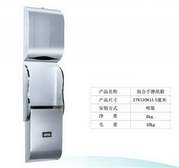 上半部分是擦手纸箱,下半部分是垃圾桶。连体式组合。