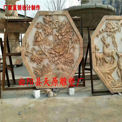 晚霞红石浮雕牡丹浮雕装饰浮雕