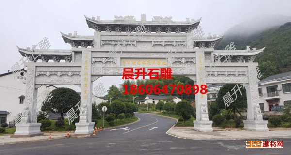 石雕刻的,花岗石雕刻石牌坊具有耐风化,不变色,经久耐用等好处,石牌坊厂家分析农村石牌坊应该修建在哪些地方才好?首先石牌坊是一个高尚的地名标志,在上面雕刻村庄的名字,让路人在很远的地方就能看到村名,“石牌坊”也是一个美化环境,提高村子的知名度靓丽景观牌坊。