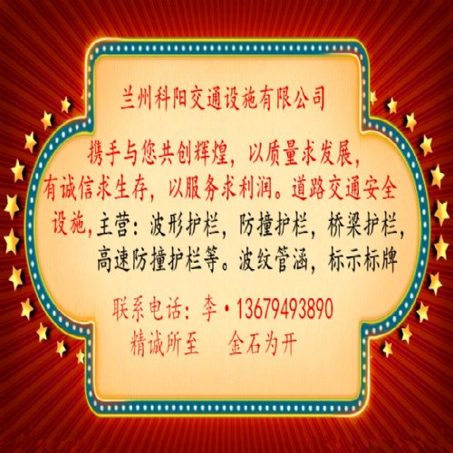 我公司主营波形护栏,以*优价格让利客户,以*好质量赢得客户,质量、信誉、价格是我们的经营理念,同时也是我们的口号,我们将保证以*优质的服务赢得您的信赖,选择我公司的波形护栏产品,相信我们会成为长期的合作伙伴。