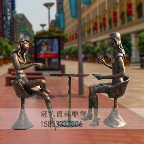 时尚商业街雕塑步行街广场咖啡店美女逛街人物雕塑玻璃钢仿铜雕塑