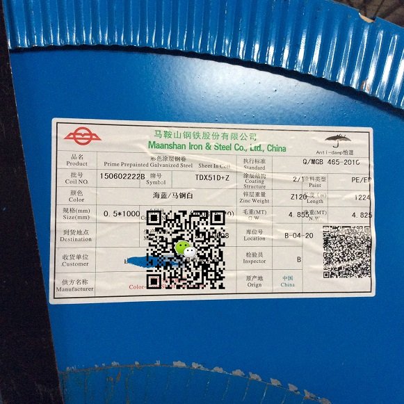 马钢彩钢板牌号:TDX51D+Z 镀锌层含量有镀锌120克/平方,镀锌140克/平方,镀锌180克/平方,镀锌275克/平方
