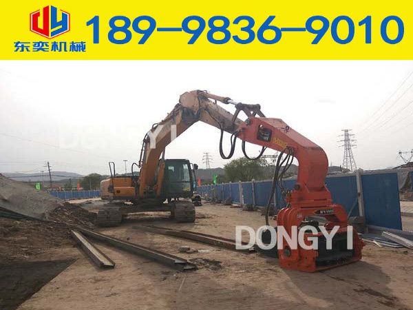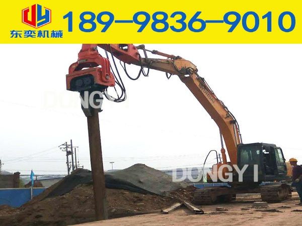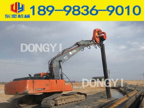 液压振动锤介绍: 1、使用进口液压马达驱动,油缸,体积小重量轻,可稳定输出高转速动力,坚固耐用。 2、液压振动锤内置减震器,采用日本进口圆柱滚子轴承,低噪音、调整可靠,使得整机性能更可靠。 3、设计配备安全装置,当振动作业时安全装置自动夹紧夹头,桩板不松脱,安全高效。 4、可以左右旋转180度,振动频率及速度可调整,操作简单,可满足不同工况的要求。 5、可以根据土质情况以及桩的材料强度随时调节控制桩锤的冲击力,具有大锤芯、低速率和较长的作业时间。液压振动锤与挖掘机加长臂,挖掘机打桩臂配套使用。