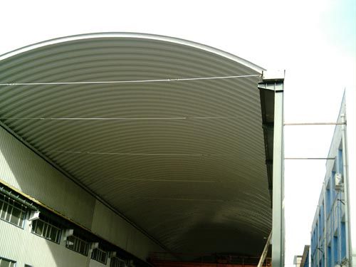 金属屋面始于国外,九十年代初进入我国,其特点是可以满足不同跨度需求,无梁无柱无檩,仅以高强度彩