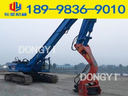 东奕机械不断对工程机械属具的研发,全新的挖掘机打桩机已经面市,此类打桩机,适合用在打拔拉森钢板桩,太阳能光伏管桩,水泥方桩,钢护筒桩等等不同的桩类。独特的设计,只需更换夹具,便可打各种桩,简单方便,一机多用。振动打桩机是由桩锤、副臂、夹嘴等设备组成,利用其高频振动,以高加速度振动桩身,将机械产生的垂直振动传给桩体,导致桩周围的土体结构因振动发生变化,强度降低。桩身周围土体液化,减少桩侧与土体的摩擦阻力,然后以挖机下压力、振动沉拔锤与桩身自重将桩沉入土中。拔桩时,在一边振动的情况下,以挖机上提力将桩拔起。适用于太阳能光伏发电打桩,河道护堤,深基坑支护,建筑地基,铁路公路软地基处理等工程中。并可在市区内施工,噪音小,符合城市及环保标准 。东奕机械是一家专业生产桩工机械,挖掘机配件,挖掘机属具和相关工程机械的厂家,主要经营:液压破桩机(包括可拆装的圆桩和固定式的方形破桩)、工法H型钢拔桩机,液压粉碎钳,螺旋钻机、各种进口及国产挖掘机大中小臂油缸总成等,经过多年的经营和积累,公司已经在国内多地设立生产基地,销售网络遍布全国各个区域,目前公司生产的产品已广泛应用于建筑工程,桥梁工程等多个领域,并在业界获得客户的普遍认可和赞誉。