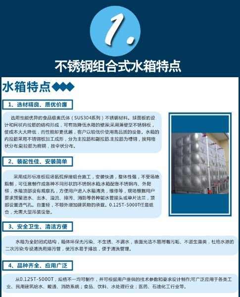 8)本公司拥有专业的不锈钢水箱安装队伍,安装既专业又快捷,为客户节省时间。