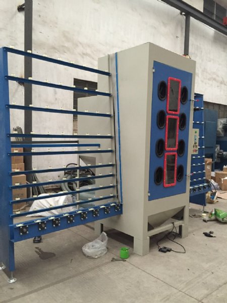 适合于宽度小于1.2m,长度不限垂直输送的各类板材的喷砂加工,如平面玻璃、