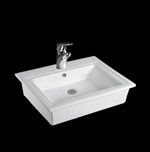 陶瓷洗手盆长方形白色单龙头孔台上盆带溢虹口520mm