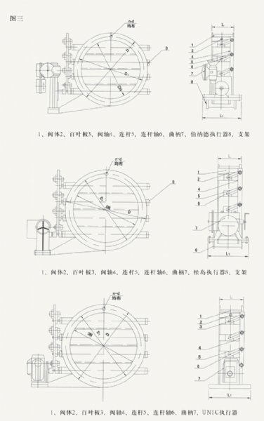 电动调节是具有自动调节特性的阀门,由阀体、百叶板、阀轴、连杆机构、驱动装置等主要部件组成,阀门主体为焊接结构,门板是由几个绕各自旋转轴动作的百叶板组成,轴端采用柔性石墨编织