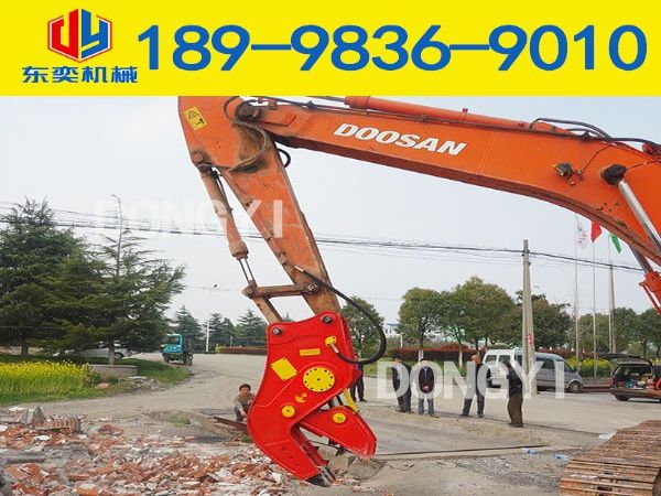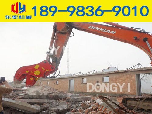 挖掘机液压钳又名挖掘机破碎钳,拆迁破碎剪。近几年在国内逐渐受到客户认可,在拆迁中粉碎混凝土作业效率高,搭配破碎锤使用,免除了人工作业的危险性高 成本高的缺点。液压钳由钳体、油缸,运动颚、固定颚四大部件组成,通过液压系统对液压油缸施加运动压力,使液压钳的运动颚和固定颚实现张合运动,实现粉碎效果。所有的破碎钳都配备了一个强有力的油缸,运用不同的压力来处理不同的工况,所有型号都配备钢筋切割刀片。 二次破拆指初次破拆后混凝土等的粉碎以便于装载和运输用于回收再用,二次破拆有效的方法是使钢筋分离。极其坚固的牙齿系统,优质合金钢,高性能的油缸,组成我们东奕机械全新的HC系列粉碎钳。