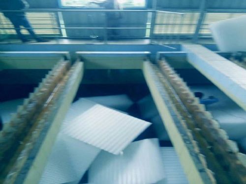 二、烫接操作 1、打开斜管填料包装,将*一片斜管填料平放于地面,取第二片斜管填料置于*一片填料之上,检查斜管填料的切口,必须保证60°角、并呈六角蜂窝状,检查无误后开始烫接粘接点; 2、在斜管填料两端所有平面接点全部要烫接,两侧两片平面合缝处要求烫接四点以上,在两片斜管填料平面中间要求焊接四点以上,确保焊接 沉淀池斜管填料安装中