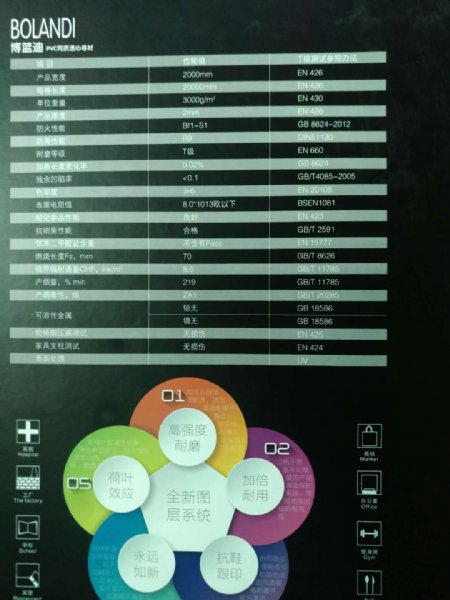 环保健康: 耐磨寿命一般比多层复合PVC地板长:按照EN685的分类,M级以上都可以用于34/43(极高流量商用场所/高流量工业场所)
