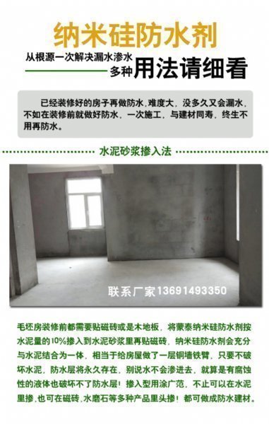 透明抗晒防水液多用于多孔性无机基层(如混凝土、瓷砖、粘土砖、石材等)不承受水压的防水及防护,用于砖墙、贴面砖外墙及涂料、天然石材饰面外墙的防水抗渗、防污、保色、抗风化等。瓷砖等外墙面防水,不改变原基底颜色。施工可采用喷涂和刷涂。用于各类建筑物外墙、仓库、坡屋面的防渗、防漏、防水;古建筑、石碑、瓷砖、大理石、花岗岩等饰面的防水、保色、防污染、抗风化、防盐析泛碱、防冻融剥落;防止墙面长霉、长青苔。亦可用于混凝土路面砖、无机保温材料表面的憎水处理,尤其适用于各类面砖、花岗石墙面。本剂不堵塞建筑物表面的毛细孔和微孔,不影响墙内及室内潮气的散发,即防潮又透气。即在外墙面形成一层肉眼观察不到的透气性憎水薄膜,就像给建筑物穿上一件透明、透气的雨衣,阻止水分湿润,浸入墙体,防止内墙面潮湿发霉、发黑和脱落等病害。