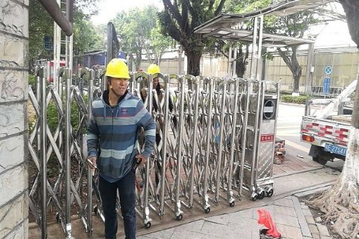 不锈钢,广州伸缩门的结构特点均由本公司技术人员精心设计而成,从而使安装黄埔区伸缩门的整体结构更合理,耐用。强度,密度和耐腐蚀性都明显提高,从而保证了伸缩门的使用寿命;,长时间不掉色,不褪色,抗氧化, 可保持颜色鲜艳亮丽。内置式滑块是根据道槽式装置原理设计而成,滑动平稳自如,**脱落。