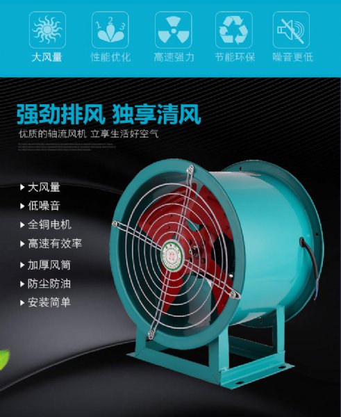 防爆轴流风机(BT35-11)也是T35-1的派生产品,用于输送易燃易爆的场所,叶轮用铝合金加工而成,以防在运转中引起火花、电机配用隔爆型电机。