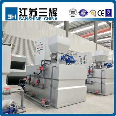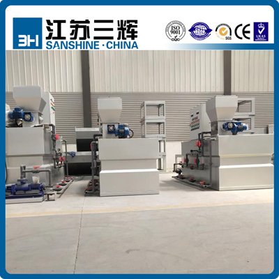 混合器,通过润湿后进入混合槽进行稀释(设定进水流量),达到要求浓度的溶液。稀释后的溶液流经熟化槽,再进入储存槽,由计量泵将药液输送至*点,当储存槽的溶液处于低液位时,