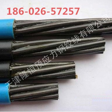 钢绞线。以15-7Φ5为例,5表示单根直径5.0mm的钢丝,7Φ5表示7条这种钢丝组成一根钢绞线,而15表示每股钢绞线的直径为15mm,总的含义就是“一束由直径15mm的7丝(每根总直径约15.24mm,尺寸偏差+0.40 -0.20;每丝直径约为5.0mm)钢绞线组成的