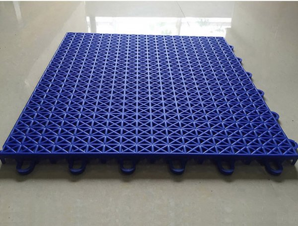 2、该产品为正方形,表面采用镂空设计,便于室外活动场地的排水和排沙,通过独特的锁扣拼接方式,铺装在室外场地上,不需要