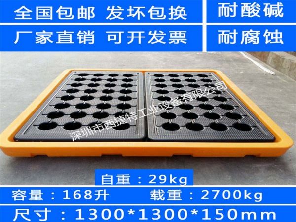1、 防泄漏托盘可配合叉车使用移动方便处理泄漏方便。