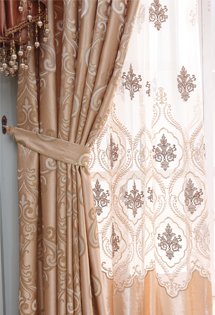 城市领秀是更是当前国内极具影响力的窗帘加盟品牌。公司集研发、设计、生产、营销于一体,聚集了当前行业内各类人才;现在为你介绍的此款产品采用柔和的香槟金色调,优美和独特的完美融合,浪漫气息弥漫整客厅,高精密绣花加金丝线,二者融合在一起,繁杂的加工使得窗帘更显贵气。欢迎对窗帘行业感兴趣想开一家窗帘品牌专卖店的你来城市领秀加盟