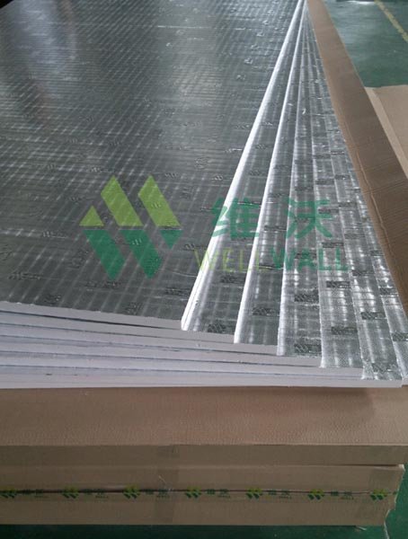 保温板(WW-W1-SL)由双面铝箔和酚醛泡沫经过先进的连续化生产线一次性复合而成,呈夹芯结构。该产品区别于间歇式、热模发泡固化成大泡沫体、再切割成板材、二次涂胶贴面的传统生产方法,产品质量稳定。铝箔(厚度在0.1MM以上也可以称作