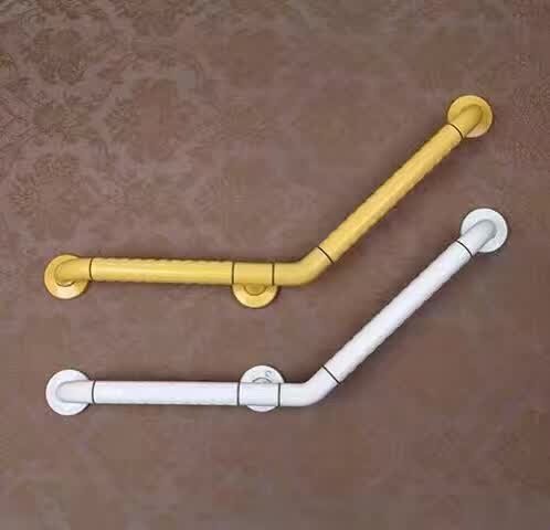 坐便器高0.45m,两侧应设高0.70m水平抓杆,在墙面一侧应设高1.40m的垂直抓杆;