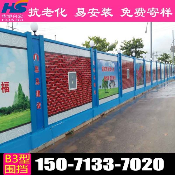 华塑兴宏PVC围挡的优势: 1、华塑兴宏PVC围挡采用独特工艺处理的聚氯制成,具有优越的耐候性能,可以抗御各种恶劣气候。无论酷暑严寒还是雨雪风霜,始络保持色彩, 2、如果沾染灰尘等污
