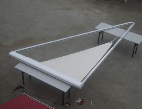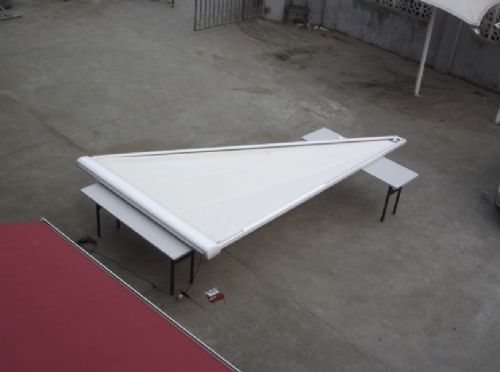 技术特点:独特的结构设计及预张力装置,时刻保持遮阳布料张力,完善的导轨系统将噪响降至*低,以导轨末端伸出距离*近支座为0.6m。由于雨天积水时,遮阳面料受重下垂,因一些尺寸较大的遮阳篷要配置拖布辊,同时遮阳篷安装时要有一定倾斜度,以利排水。