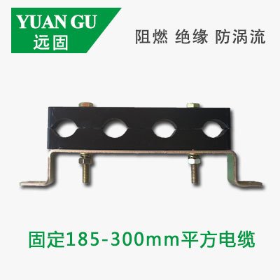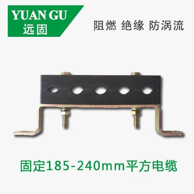 2. 四孔电缆固定夹具型号:YGF-43,外形尺寸:240×55×25mm,螺杆中心距:145mm,适用电缆外径184-300mm2。