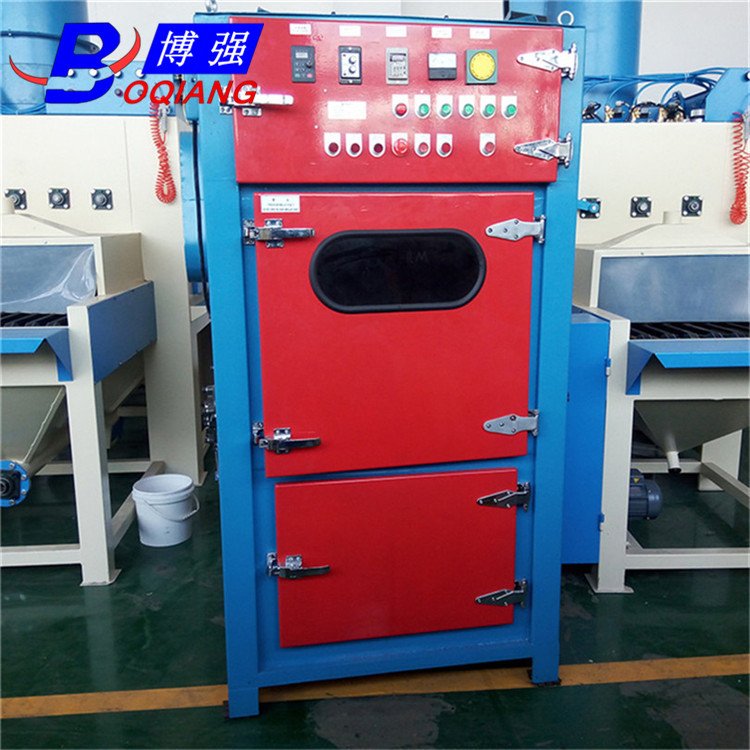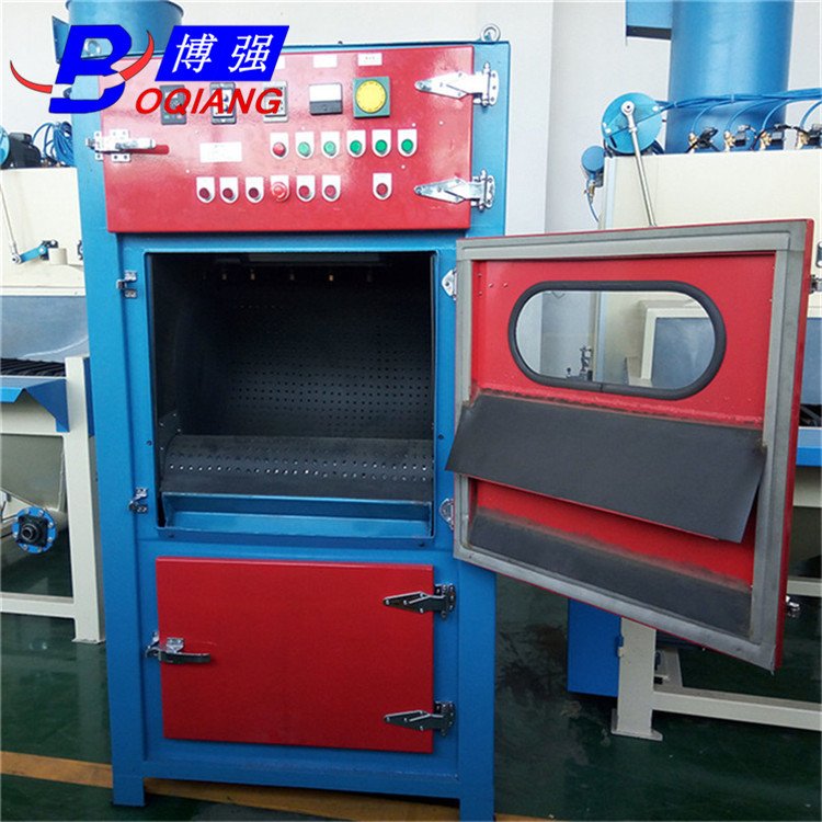 2、砂材抛射是经过高速回转之叶轮抛射在工件上,针对于片形及孔内凹凸之毛边去除抛射力量之大小可在控制面盘上调整。