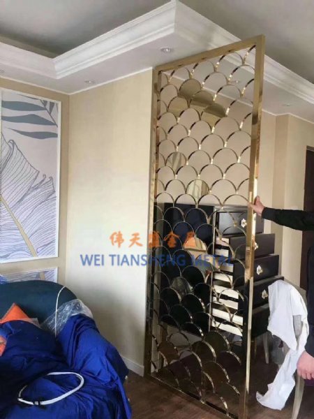 不锈钢方管/扁管/或者板材刨坑拆弯成型。拼接完成品。*后拿去上颜色。先将材质本身就有抗腐蚀的功能;如果利用电解原理使不锈钢制件的表面真空电镀上一层致密金属膜,使其成为彩色不锈钢屏风;彩色不锈钢屏风除了可以达到屏风理想的色彩效果以外,还可以提高耐腐蚀、耐磨性等物理性能。屏风镀色有三种。电镀/水镀/喷漆/的颜色有:钛金(黑钛)、古铜色、黄古铜、青古铜、黑玫瑰、玫瑰红、 玫瑰金.香槟色。等各种颜色;屏风的表面还可以根据客户的要求可对其进行镜面、拉丝或乱纹的处理,增强屏风的表面整体效果。