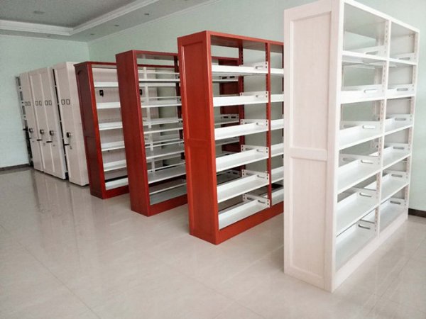 防火板书架,采用枫木、橡木、松木、楠木等,外形美观,结构稳固,持久耐用。双面双柱书架标准配置为六托六层,层高可调节,双面存放书籍。