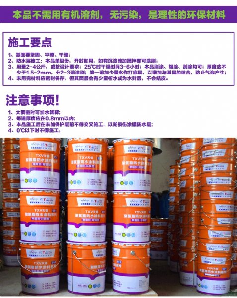 4.完工后,防水层未固化前,不得上人,不得进行下道工序,以免破坏防水层。