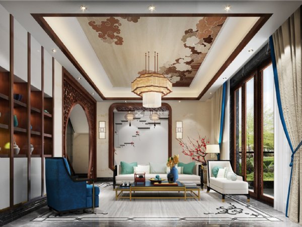 设计说明:本案以中式元素为表现形式,为中国文化为基础,体现关个性中式风格的大气、尊贵。