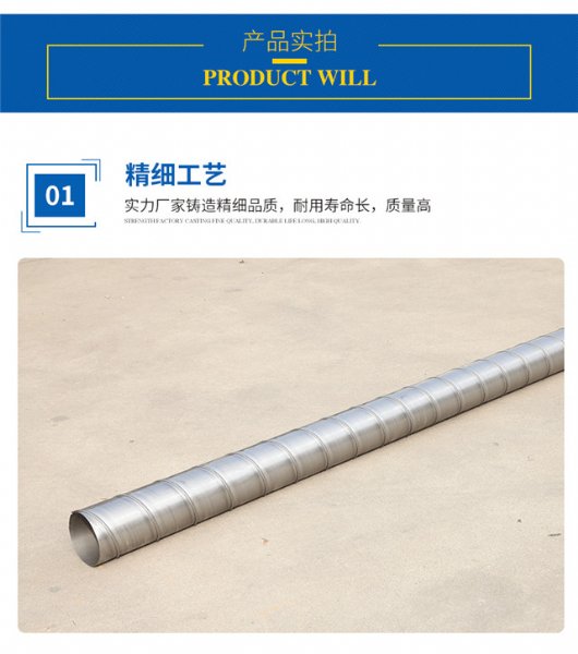 4、除尘:有些工厂消费车间很多尘埃,需求特地的除尘安装,其中风流量较大的管道,可运用螺旋风管。