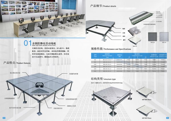 ),经拉伸后点焊成形。外表经磷化后进行静电喷塑处理,内腔填充标准纯水泥,上表面粘贴导静电PVC板,四周镶嵌导静电边条。
