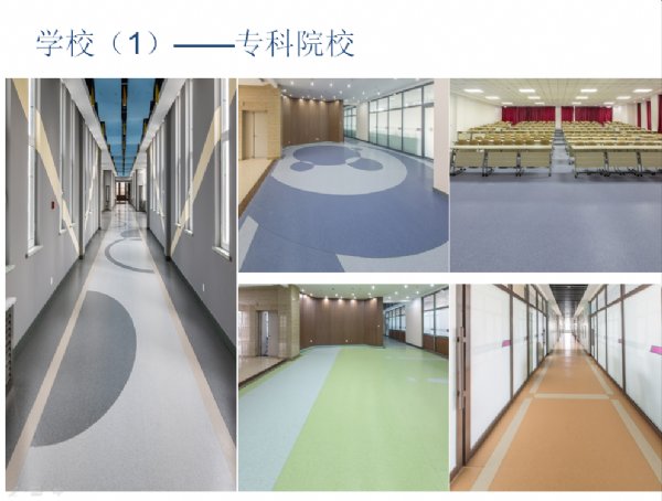 弹性地材是指地板在外力作用下发生变形,当外力解除后,能完全恢复到变形前形状的地板。这种地板称为弹性地板。该地板使用寿命长达30年-50 年,具有卓越的耐磨性、耐污性和防滑性,富有弹性的足感令行走十分舒适。弹性地板因其优越的特性而倍受用户青睐,它们被广泛应用于医院、学校、写字楼、商场、交通、工业、家居、体育馆等场所。