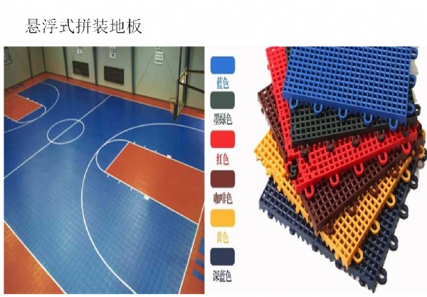 悬浮式拼装地板采用成熟的高强度聚丙烯环保材料,有效解决地板热胀冷缩问题的同时还具有稳定的表面摩擦,抗紫外线添加剂被加入到每一块地板中,能够保障地板在长期受日光照射中不褪色,悬浮式的结构设计加上坚固的加强型支撑脚结构,创造卓越的垂直的减震效果,防滑的表面可有效防止运动损伤,良好的球回弹性能和球速保证了地板卓越的运动性能,它可用于铺装理想的高性能篮球场、网球场、五人足球场、轮滑球场、乒乓球场以及排球、羽毛球等多功能球场。