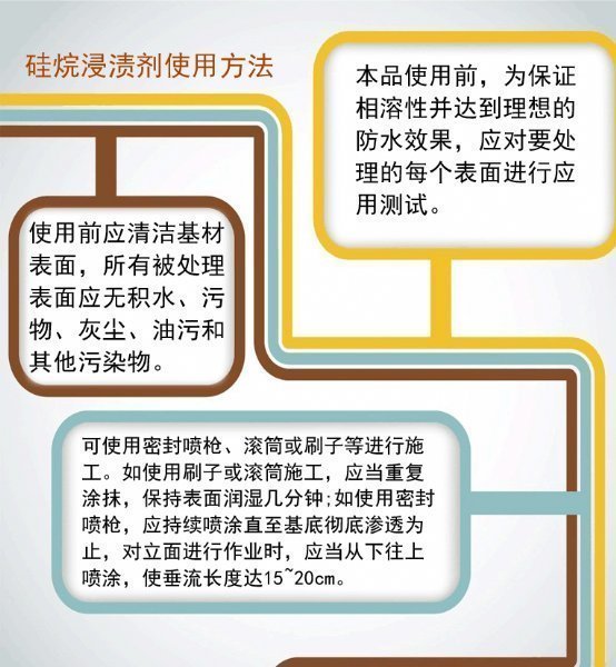 硅烷浸渍剂,防水、防氯离子、抗紫外线的性能且具有透气性,可有效防止基材因渗水、日照、酸雨和海水的侵蚀而对混凝土及内部钢筋结构的腐蚀、疏松、剥落、霉变而引发的病变,提高建筑物的使用寿命。
