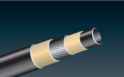 复合管是以高强度钢丝左右螺旋缠绕成型的网状骨架为增强体,以