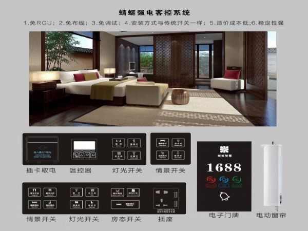 旧酒店升级改造智能酒店,新酒店安装智能系统。免RCU,免布线,免调试,安装方式和传统方式一样,造价成本低,稳定性强。可直接对接天猫精灵实现语音控制。连体