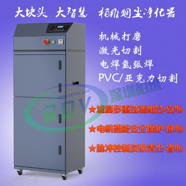 烟尘净化器” 是柏维™ 自主研发生产,对激光切割、激光打标、激光雕刻等相关行业领域粉尘、烟尘、异味等问题针对性处理的专业设备。