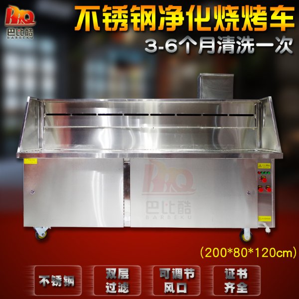 在环保要求严格,人类要求健康美食的时代,《天津巴比酷》为健康烧烤推出[新型无烟环保烧烤净化车]净化效果好,无油烟 ,使用寿命长,双层过滤,平口吸风设计为烧烤师傅健康着想,吸风口可根据需要调节,静音效果好无噪音,清洗方便简单!3个月左右清洗一次!国内首款净化率达98%的烧烤净化车!为了环保的检查,为了烤品更出色,为了不在受烟熏火燎,更为了自己的健康,你都需要一台新型无烟净化车!
