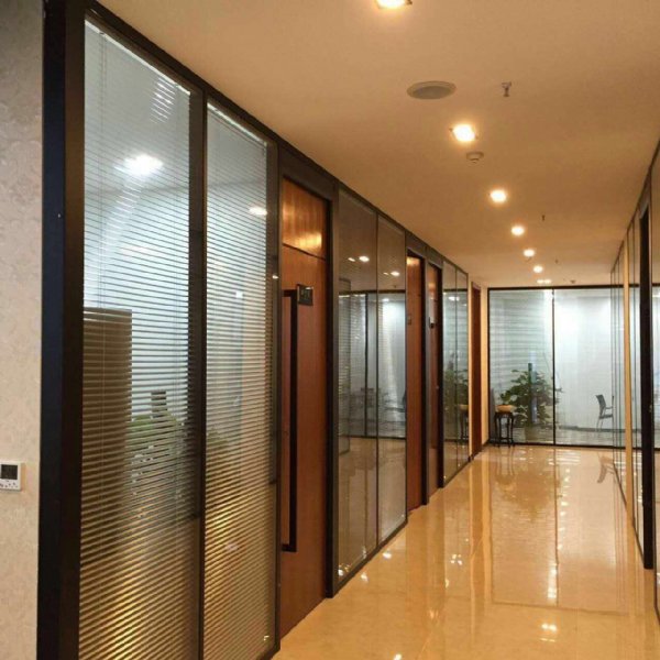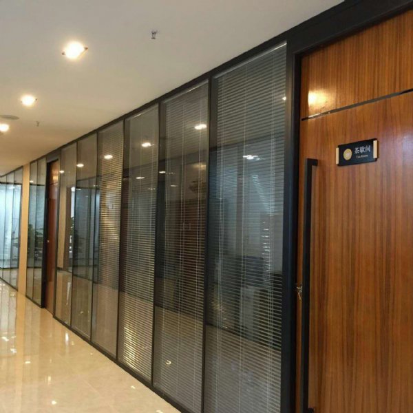 双玻百叶隔断追求视觉效果与功能应用双重优点内置铝镁百叶,,开启时展现通透明亮的沟通渠道,闭合时营造出私密的个人办公空间,而且使用的原材料具备防火,阻燃,无化学污染及安全性优良的优点,还具有吸音,隔热,防尘与表面可清洗之功效,还可以在任意空间做多次的重复使用,是现代办公室不错的选择。