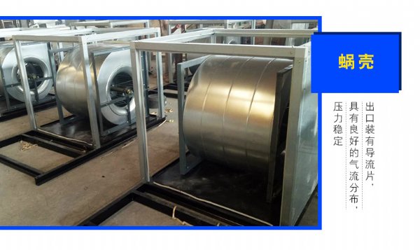 3、 风机主要部件叶轮在消化、吸收美国LAU工业公司产品的基础上,全部采用模具化生产。为多翼前湾叶片叶轮,具有效率高、噪声低、风量大、运行平稳、质量稳定、经久耐用等特点。蜗壳采用优质镀锌板或碳钢板,机械化生产。