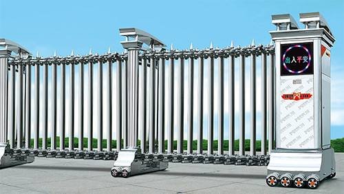 电动伸缩门。用料分别有不锈钢,铝合金、压铸铝、铸铁和多种烤漆颜色型材。同时还生产